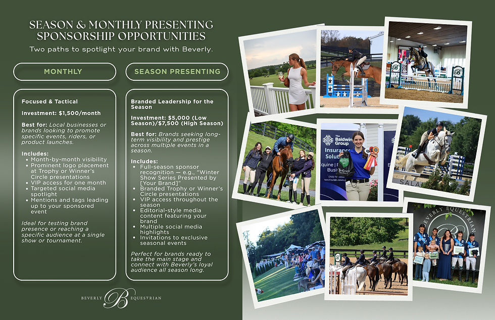 While our show circuit operates year-round, spring represents a meaningful shift across the entire Beverly operation. Longer days, outdoor riding, and expanded programming bring renewed energy to our community, our competitors, and our sponsors alike.