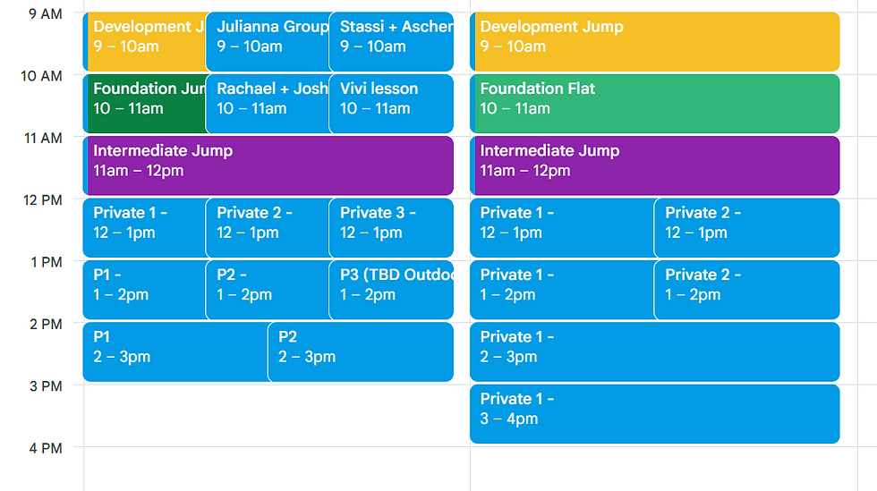 This block is available for lesson sign-ups on the hour through the Google Calendar.